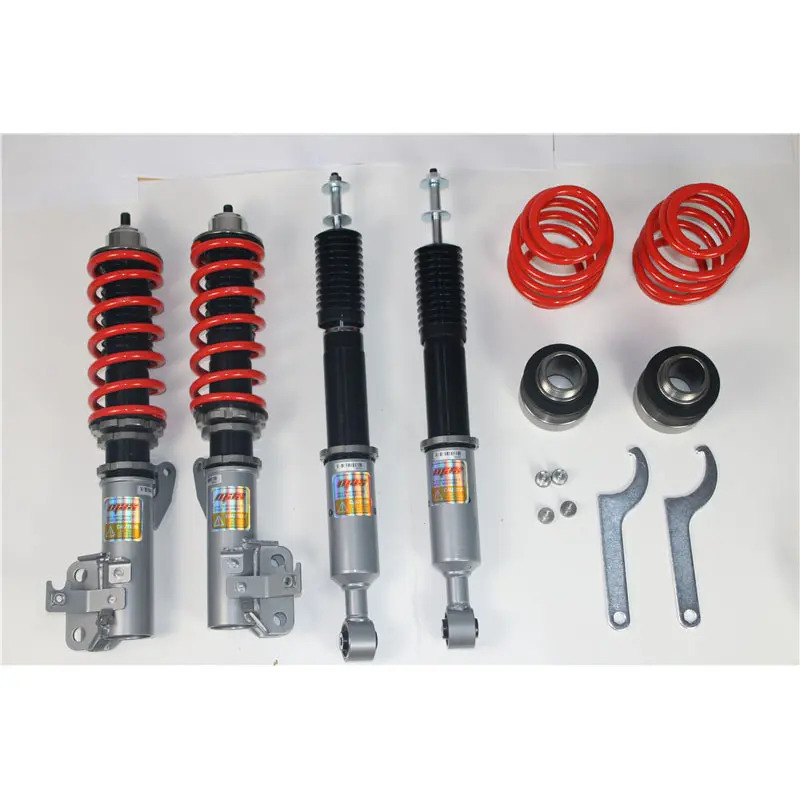 Automakers manufacture coil springs to support the vehicle body, absorb bumps, and maintain ride height. The coil springs reduce the impact of bumps and potholes through compression. The shock absorber does not support the vehicle body; it controls the movement of the coil springs to ensure the tires remain in contact with the road, thus ensuring a smooth ride. Coilover suspension integrates the coil spring and shock absorber into an adjustable unit, contributing to improved vehicle handling and comfort.