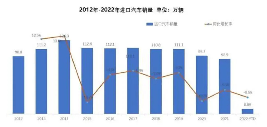 2.In recent years, the terminal demand for imported cars has remained relatively stable. Due to the short-term impact of the epidemic and chips, the imported car market began to decline in 2020. In January 2022, 88,900 vehicles were sold, a year-on-year decrease of 8.9%.